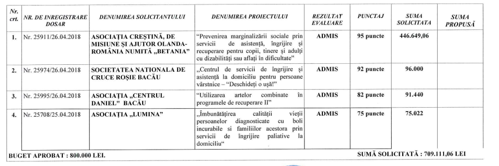 - 1. aprobarea listei finale a proiectelor care vor primi în 2018 finanțare nerambursabilă pentru activități nonprofit de interes general în baza Legii 350/2005;