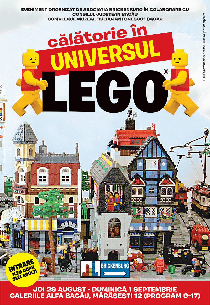 Ca să trec la subiect, începând de joi, 29 august și până duminică, 1 septembrie, Asociația Brickenburg organizează la Galeriile Alfa, în colaborare cu Consiliul Județean Bacău, o Călătorie în universul LEGO.