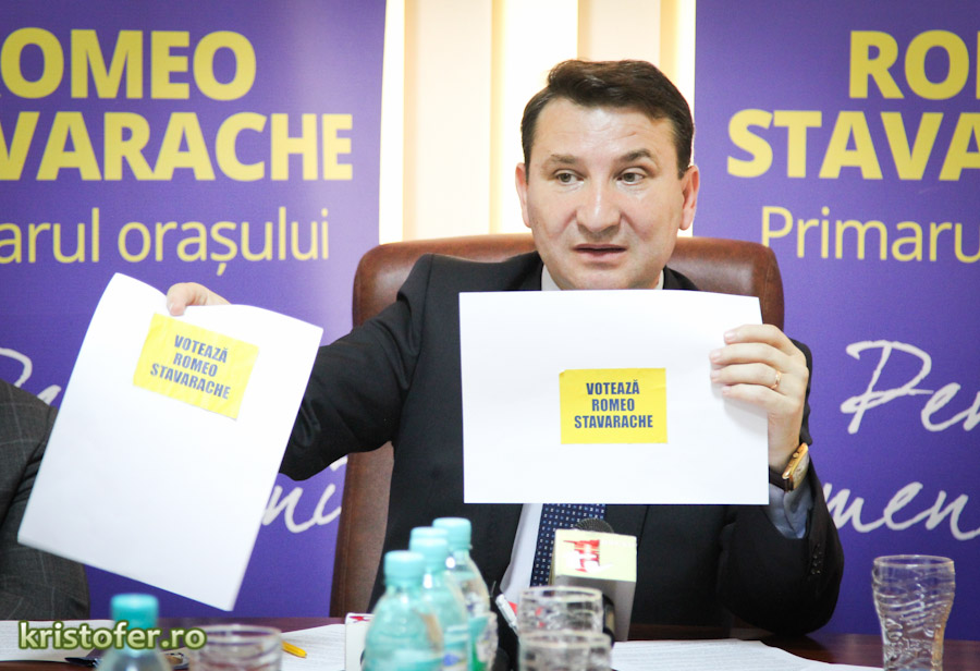 În cadrul conferințelor de presă organizate la Casa Liberalilor Băcăuani, Romeo Stavarache a condamnat atât lipirea autocolantelor pe mașinile cetățenilor, cât și realizarea și distribuirea unei ediții false a ziarului Mesagerul.
