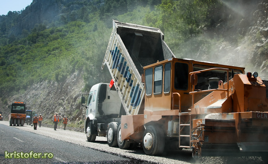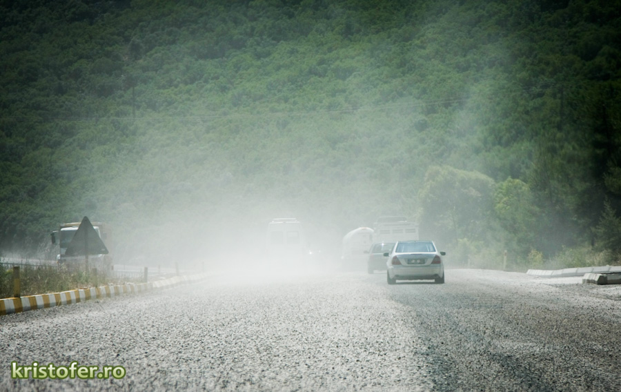 Iar ca sa va minunati putin, vreau sa va arat cum asfalteaza turcii (foto jos). Niveleaza, toarna mai intai un covor asfaltic, dupa care pietris. Pietrele intra in covorul asfaltic in timp ce autovehiculele circula. Soferii sunt cei care consolideaza covorul asfaltic. Tare, nu?