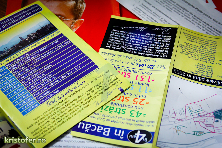BacaufotoDin cufărul cu promisiuni 14 ani ago3 Am găsit niște pliante electorale din 2008. Să le luăm sau nu la disecat? Articole recomandate: Promisiuni care trebuie respectate de Stavarache Promisiuni – se va tine de cuvant Stavarache? Vin alegerile, teancurile de pliante şi şcolile de vară! Campania electorala civilizeaza? PNL Bacau a inceput campania electorala pentru parlamentare – foto Navigare în articole Previous: Avem nevoie de o revoluție în educațieNext: LIDL construiește al patrulea magazin în Bacău 3 thoughts on “Din cufărul cu promisiuni” daa…sa le luam… Răspunde da, promisiunile se repeta la fiecare 4 ani … ! Răspunde Nu stiu daca esti familiar cu „Obametrul” ( http://www.politifact.com/truth-o-meter/promises/obameter/ ) dar ar fi interesant sa vedem si ceva adaptat local. Răspunde Lasă un răspuns Anulează răspunsulAdresa ta de email nu va fi publicată. Câmpurile obligatorii sunt marcate cu *Comentariu * Nume * Email * Site web Salvează-mi numele, emailul și site-ul web în acest navigator pentru data viitoare când o să comentez. Δ