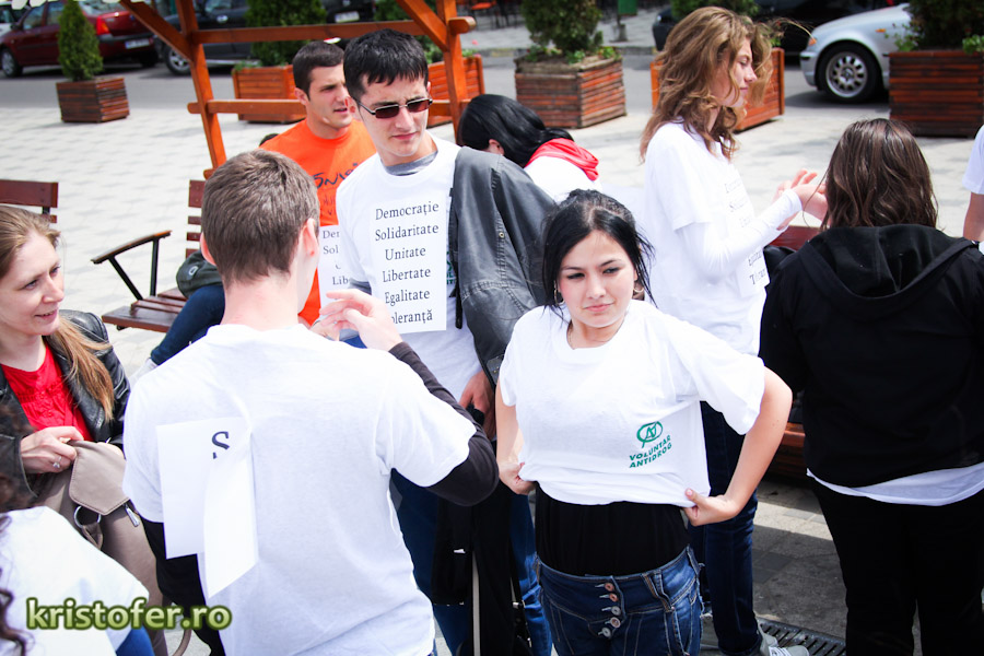 Consiliul Județean al Elevilor Bacău a organizat astăzi, în Piața Tricolorului, un flashmob la care au participat peste 100 de elevi băcăuani. Pe de o parte, scopul acestuia a fost de a deschide activitățile din cadrul Săptămânii Naționale a Voluntariatului în Bacău, iar pe de altă parte a fost organizat cu scopul de a sensibiliza, pe lângă elevi, și alți factori de la nivelul comunității locale cu privire la ajutorarea a aproximativ 400 de persoane din localitatea Valea Plopului, afectate în luna decembrie 2011 de un incendiu devastator în urma căruia au fost distruse camerele de locuit, cantina precum și adăpostul de alimente din cadrul așezământului social în care aceștia trăiau.