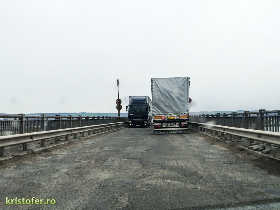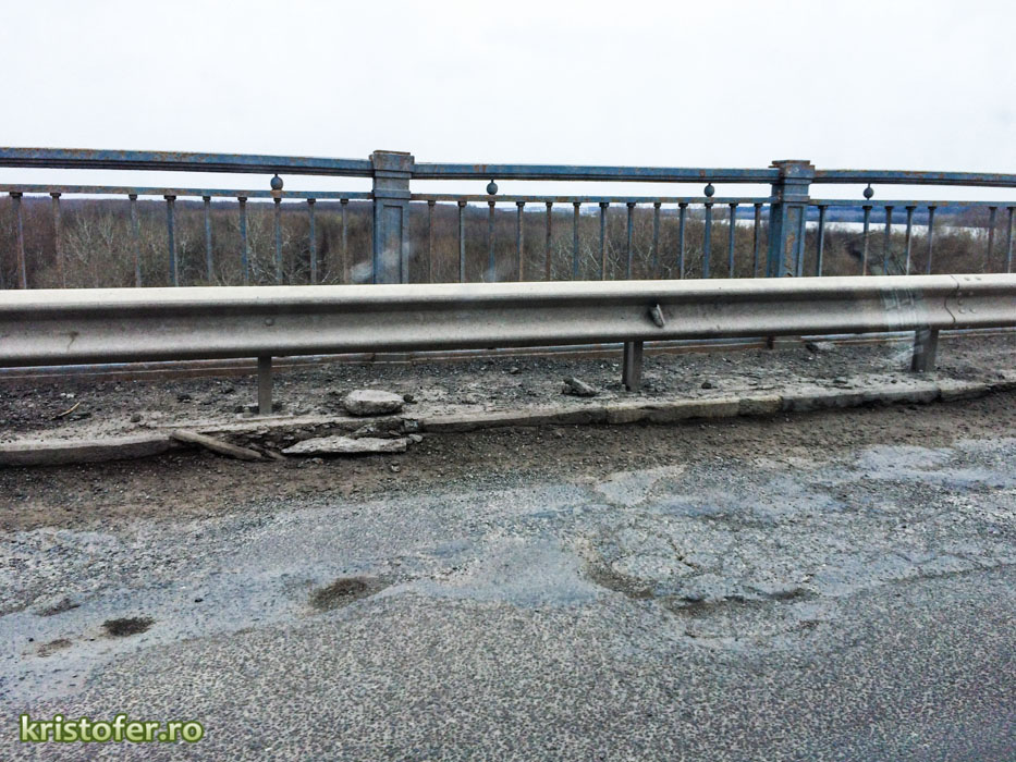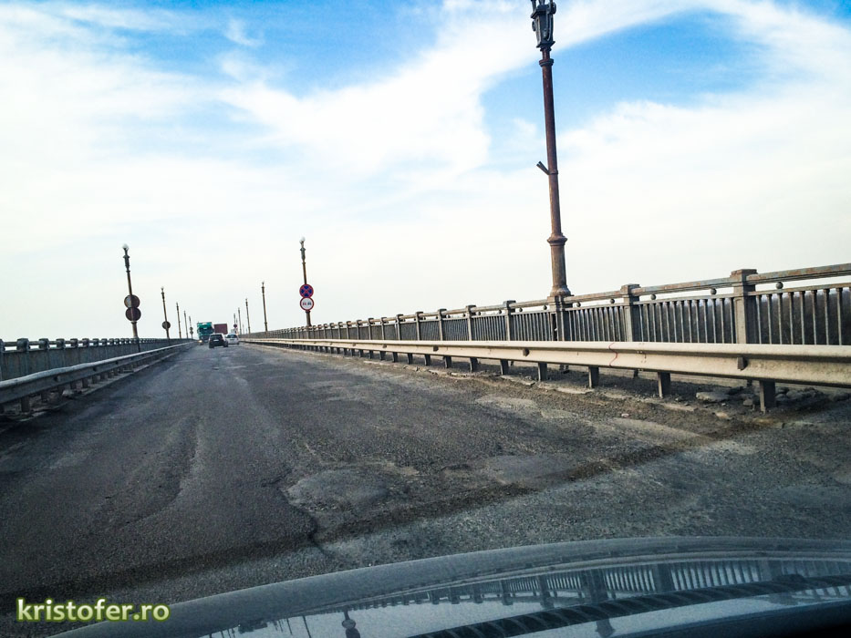 Unele gropi din partea românească sunt atât de mari încât pe dedesubt se vede structura metalică a podului. Noroc cu panourile alea metalice, altfel nu știu câți ar fi avut curajul să se aventureze pe pod. Nu vreau să bag frica în nimeni, dar problema nu e numai estetică și de confort, ci mai ales una de siguranță. În schimb, cealaltă jumătate de pod, a bulgarilor, e aproape ca-n palmă. Scheletul metalic e vopsit, lămpile sunt curate, carosabilul e marcat și, cel mai important, nu sunt gropi. Data viitoare când aveți de gând să râdeți de bulgari, să aveți în cap fotografiile de mai jos!