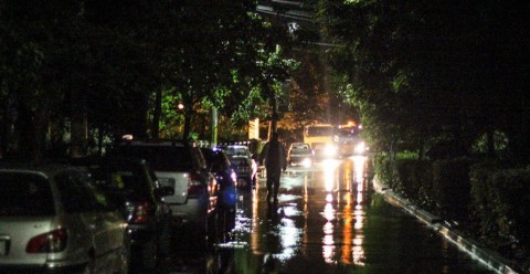 Eram în trecere și nu m-am încumetat să traversez ditamai balta ca să întreb de ce intrarea pe stradă era plină de apă. Vreo conductă spartă, cel mai probabil. Shit happens.