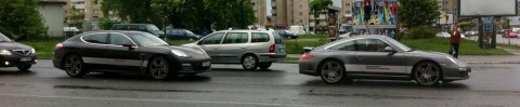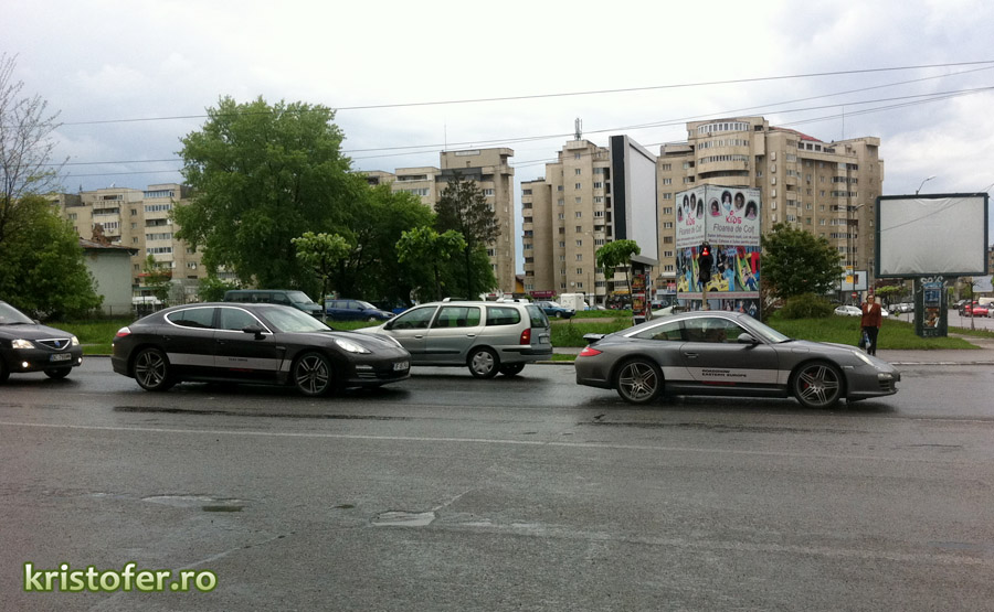N-am fost destul de interesat sa aflu ce este cu Porsche-urile care de cateva zile se plimba pe strazile Bacaului, dar cert este ca avem in oras o caravana care contine 5-6 super-masini, ce are ca scop promovarea marcii. Sincer, m-as plimba si eu cu unul. Oare vorbim despre Porsche Roadshow Easter Europe?