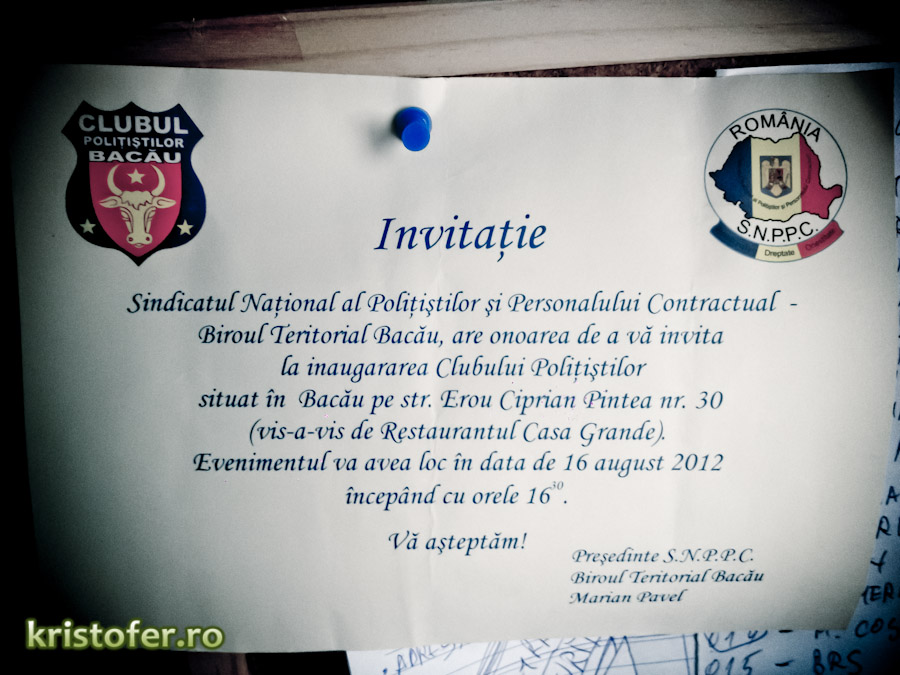 BacaustiriSe deschide Clubul Polițiștilor 14 ani ago0 Joi, Biroul Teritorial Bacău al Sindicatului Național al Polițiștilor și Personalului Contractual inaugurează, pe strada Erou Ciprian Pintea nr. 30, Clubul Polițiștilor din Bacău. Articole recomandate: Se deschide Club Kremlin Bacau pe 4 decembrie 2009 Spectacole organizate astazi de Clubul SMART in Arena Mall Inca un restaurant McDonald’s in Bacau Clubul pensionarilor din Bacau – 60+ Si ne-am ales Navigare în articole Previous: Concerte live și atmosferă vestică, în Parcul CancicovNext: Fântâna din Tușnad. Ce facem cu rugina? Lasă un răspuns Anulează răspunsulAdresa ta de email nu va fi publicată. Câmpurile obligatorii sunt marcate cu *Comentariu * Nume * Email * Site web Salvează-mi numele, emailul și site-ul web în acest navigator pentru data viitoare când o să comentez. Δ