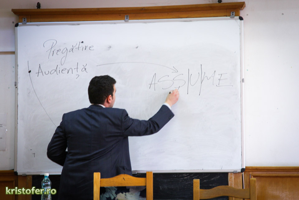 Vineri, 28 martie 2014, zeci de studenți ai Universității „Nicolae Titulescu” din București au participat la un workshop de public speaking susținut de Ionuț Rusu de la Asociația opvp (oricine poate vorbi în public). Am fost și eu pe acolo și mi-a plăcut ce-am auzit.