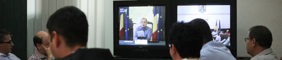 Sala mica a Prefecturii a gazduit astazi o videoconferinta cu premierul Emil Boc. Acesta le-a comunicat prefectilor din toata tara prioritatile guvernului pentru urmatoarea perioada. La conferinta n-am vazut urma de Constantin Scripat (prefect al jud. Bacau). O fi plecat la vanatoare?