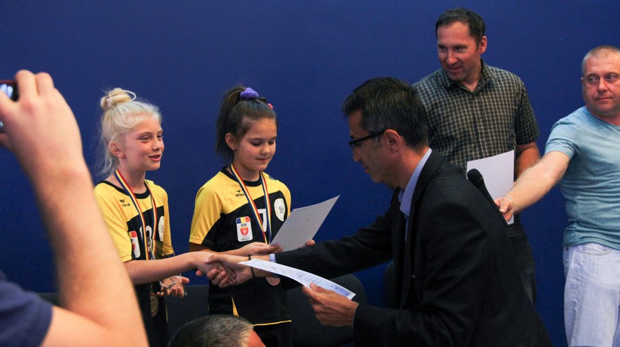 4. Dragoș Benea, președintele Consiliului Județea Bacău, a înmânat echipei de minihandbal fete a Clubului Sportiv „O.K. Sport” Onești diplomele și premiile (câte 100 euro pentru fiecare jucătoare și pentru cei doi antrenori) pentru câștigarea locului III și medaliile de bronz în Campionatul Național 2014-2015 – Divizia minihandbal feminin, organizat de Federația Română de Handbal.