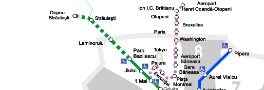 Hărţile pe care le vedeţi astăzi în metroul bucureştean trebuie toate schimbate. Acestea nu mai sunt de actualitate după ce proiectul Magistralei 6 de metrou Otopeni – 1 Mai a fost modificat. Astfel, „linia mov” va cuprinde nu 4, ci 12 staţii. 4 dintre ele vor purta numele a patru capitale: Tokyo, Washington, Paris şi Bruxelles.