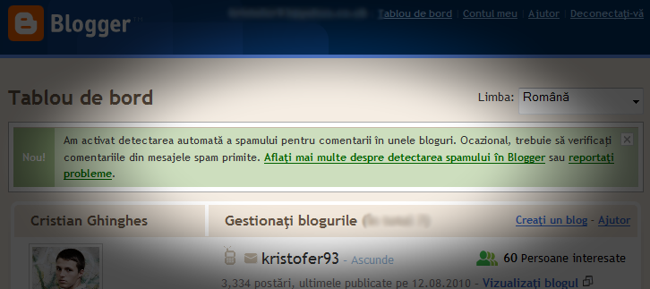 Blogger are o functie noua. Este vorba despre detectarea automata a spamului pentru comentarii. Astfel, comentariile pe care Blogger-ul le vede ca spam vor fi trimise in spam moderation.