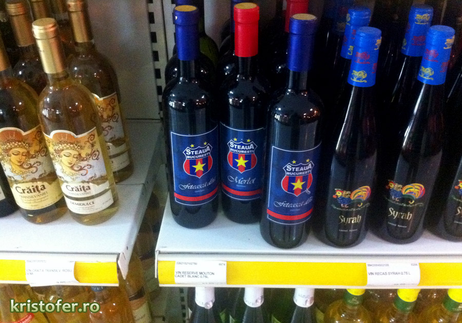 Dupa ce Piticu a suprins zilele trecute in Bucuresti berea Steaua, eu am vazut aseara la o benzinarie din Bacau stema aceluiasi club pe sticle de vin. Vinul Steaua nu este o noutate din cate stiu eu, insa este pentru prima oara cand il vad in zona asta.